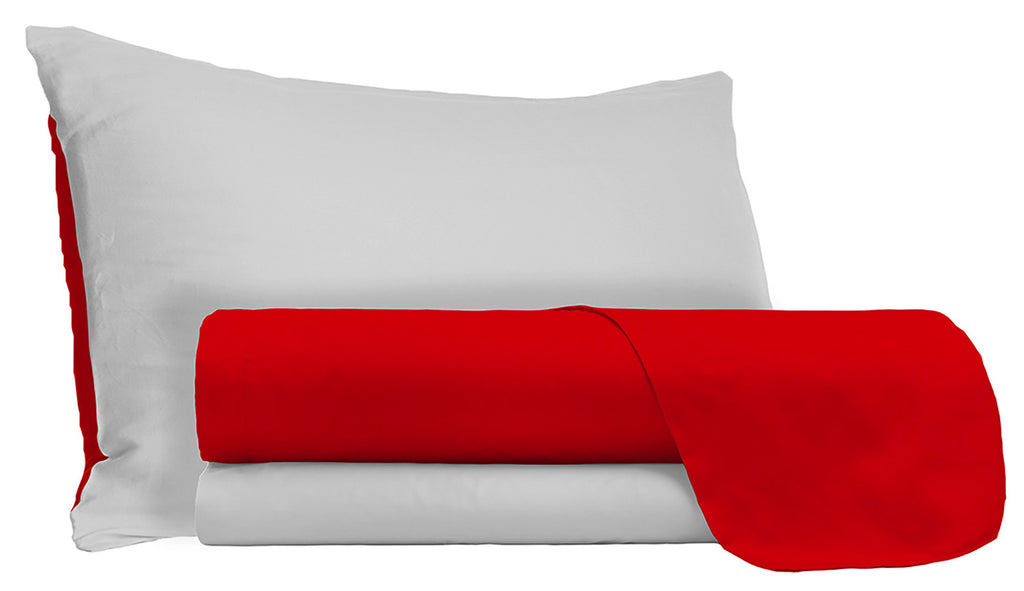 Set Lenzuola Sopra Sotto e Federe Doubleface Rosso\/Grigio Chiaro