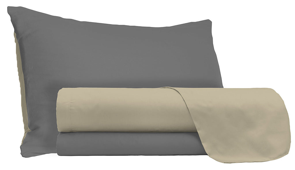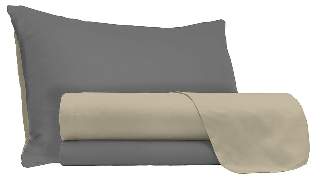 Set Lenzuola Sopra Sotto e Federe Doubleface Tortora\/Fumo