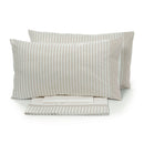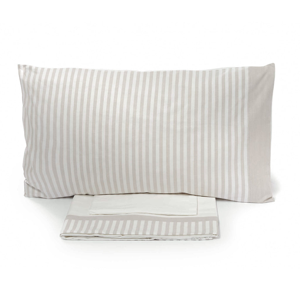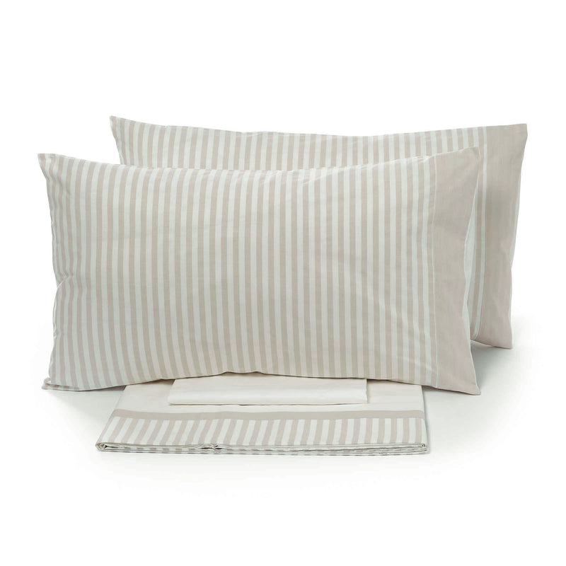 Completo letto in puro cotone tinto in filo, riga media. Include: 1 lenzuolo sopra, 1 lenzuolo sotto con angoli e 2 federe. Interamente realizzato e confezionato in Italia secondo la tradizione tessile artigiana Toscana.