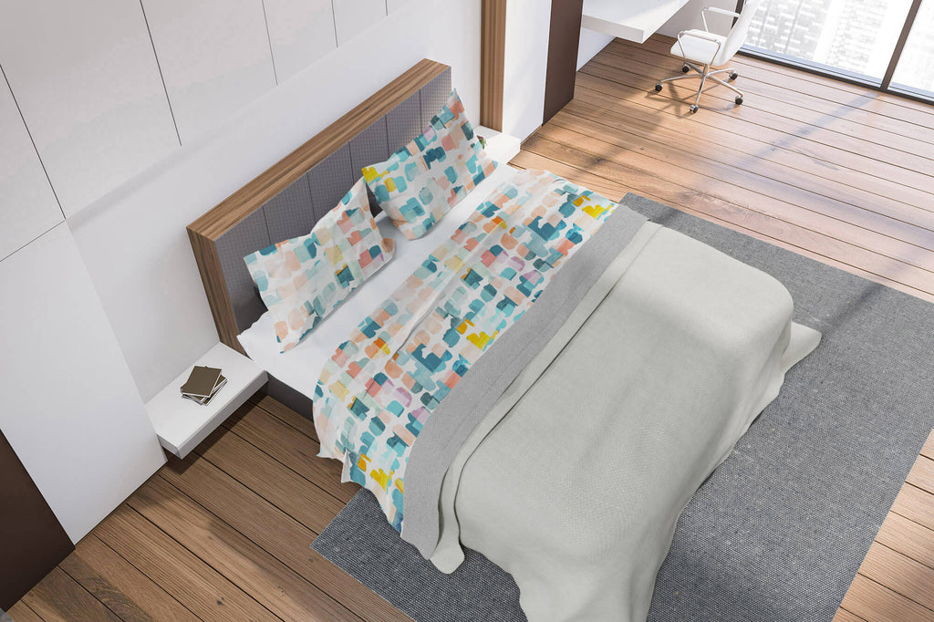 Set Lenzuolo Matrimoniale Sopra e Federe con Stampa Watercolor 06