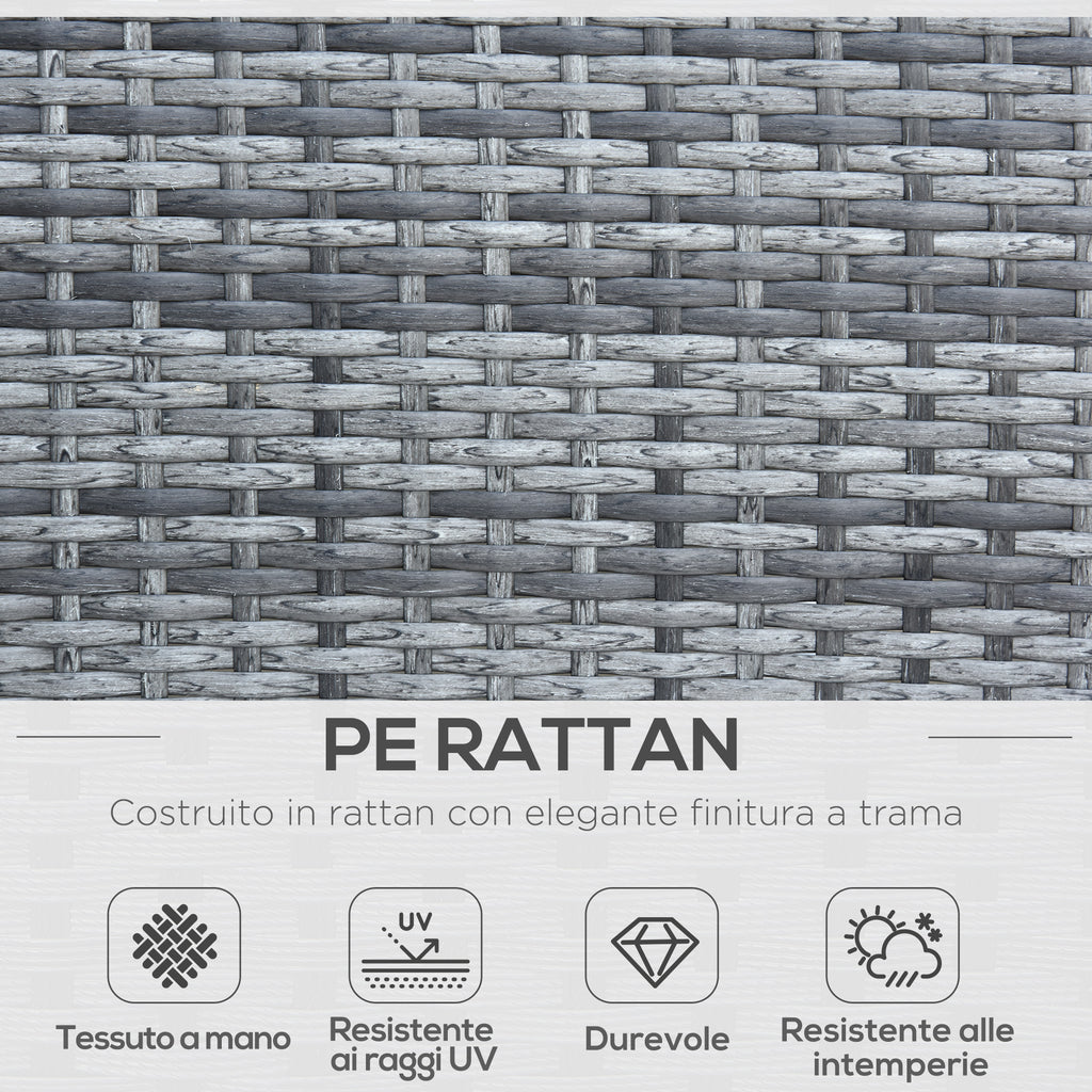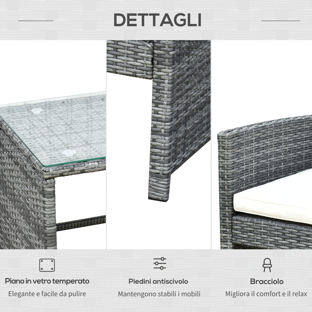 Set Mobili da Esterno in PE Rattan Divanetto e 2 Poltrone con Tavolino e Cuscini Grigio