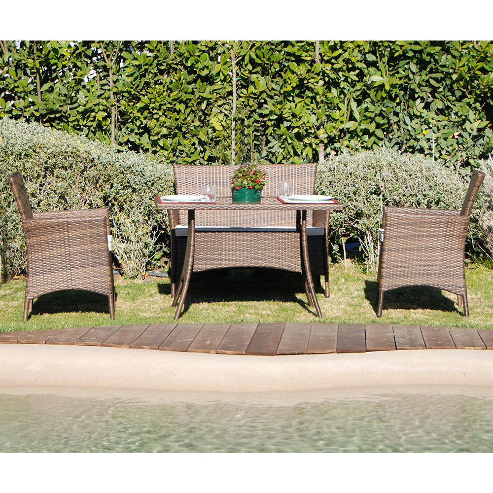 Set Salottino Polyrattan Color Caffe' Divano Poltrone Tavolino per Arredo Giardino Terrazzo
