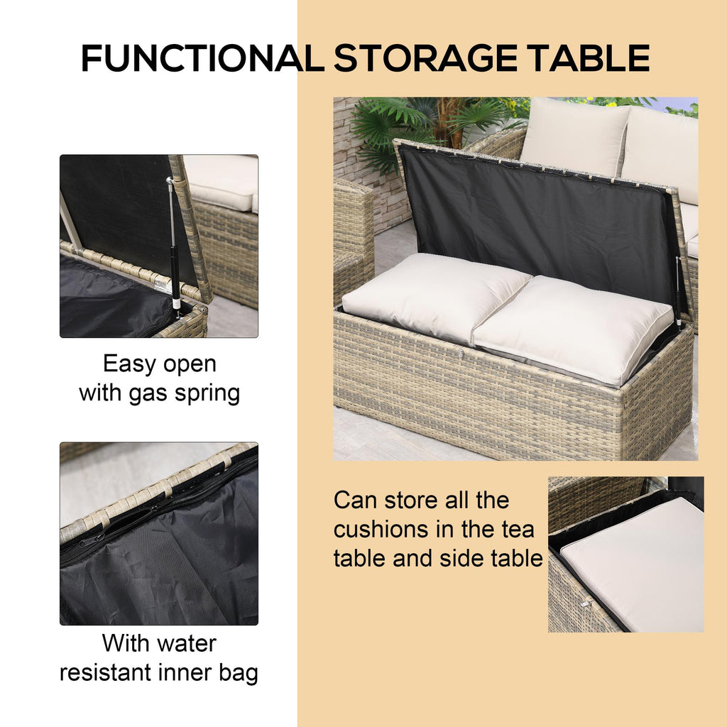 Set Salotto da Giardino 2 Divani 2 Poltrone Tavolino e Tavolo Contenitore in Rattan Beige
