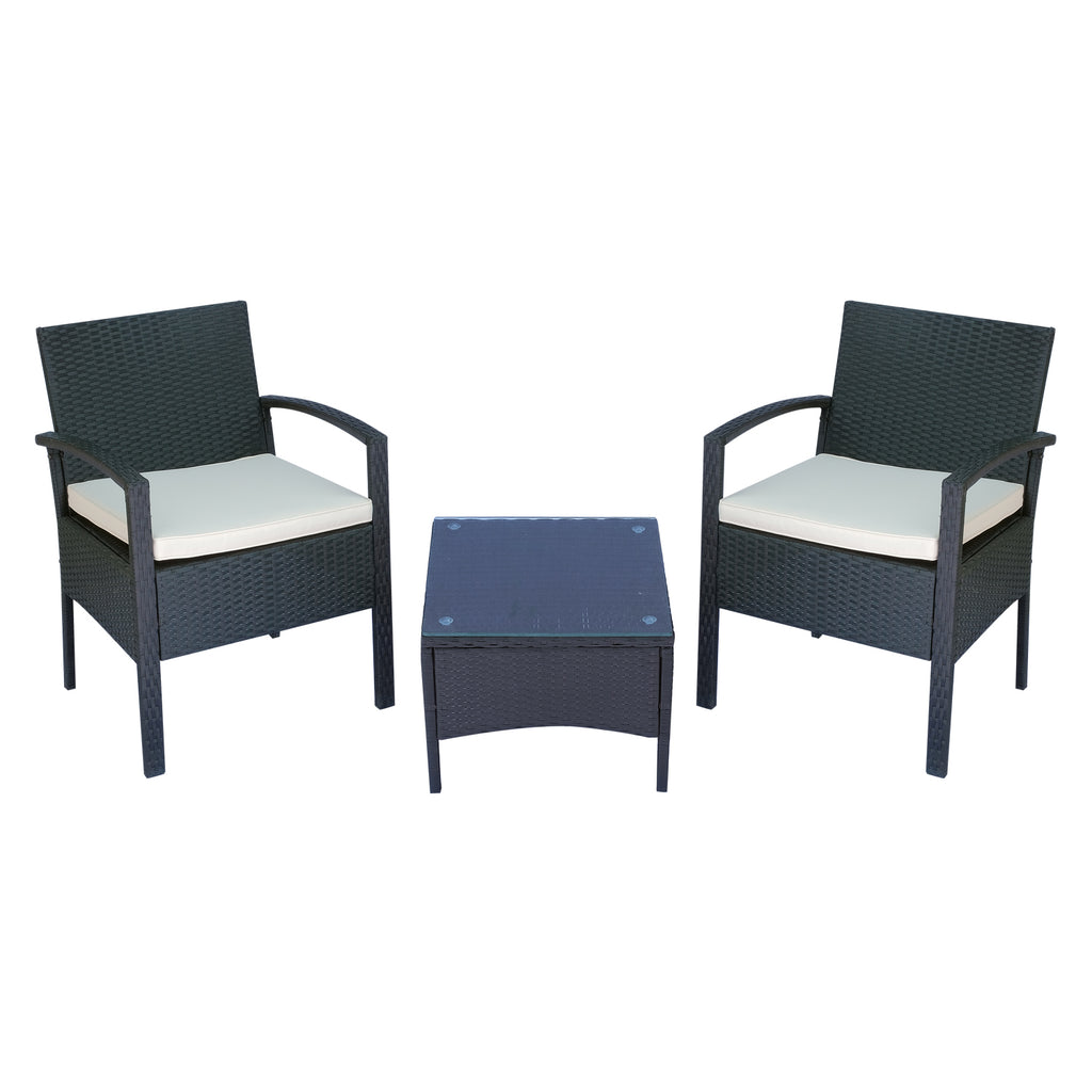 Set Salotto da Giardino 2 Poltroncine e Tavolino con Cuscini Rattan Sintetico Nero
