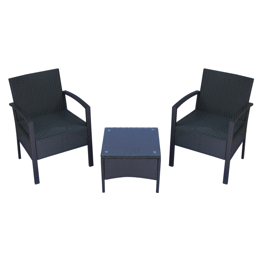 Set Salotto da Giardino 2 Poltroncine e Tavolino con Cuscini PE Rattan Nero