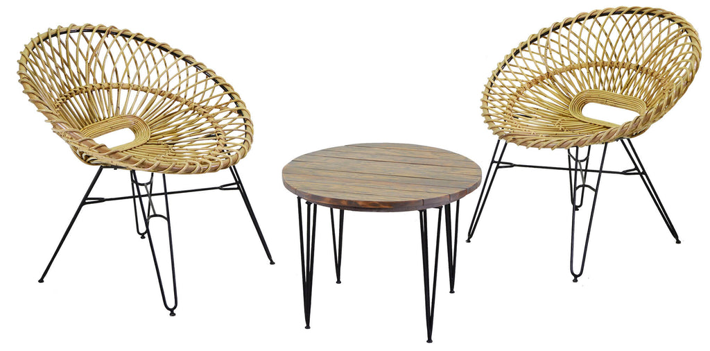 Set Salotto da Giardino 2 Poltrone e Tavolino in Rattan Luna Naturale