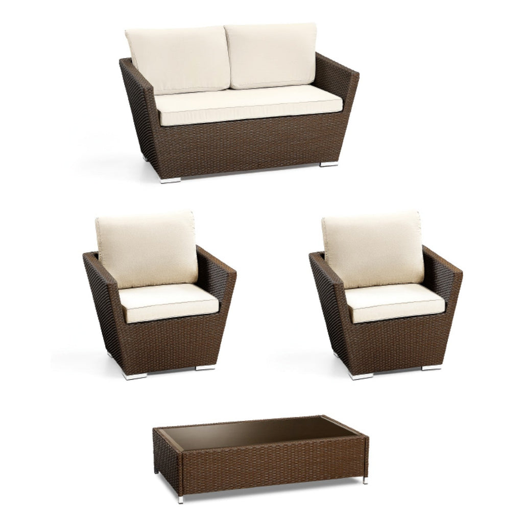 Salotto Adila Quadro Polyrattan 4 Pz Noce con 2 Poltrone+Divano 2Posti+Tavolino