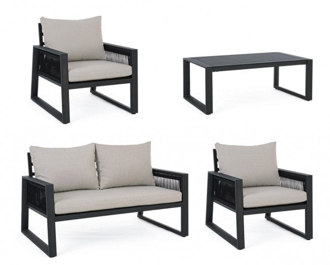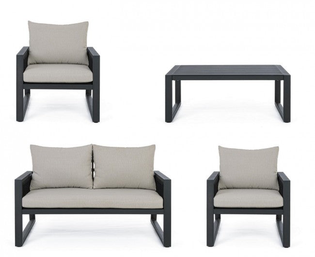 Set Salotto da Giardino Divano 2 Poltrone e Tavolino Captiva Antracite