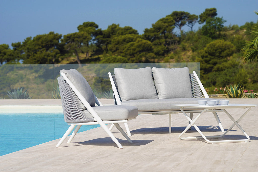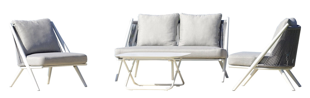 Set Salotto da Giardino Divano 2 Poltrone e Tavolino con Cuscini Grigio Chiaro