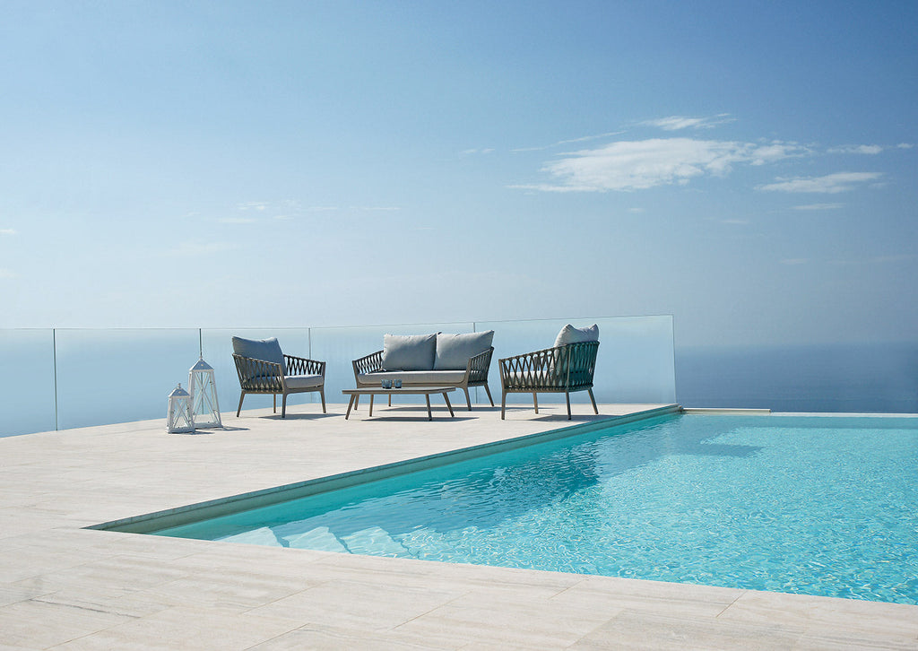 Set Salotto da Giardino Divano 2 Poltrone e Tavolino con Cuscini Grigio Chiaro