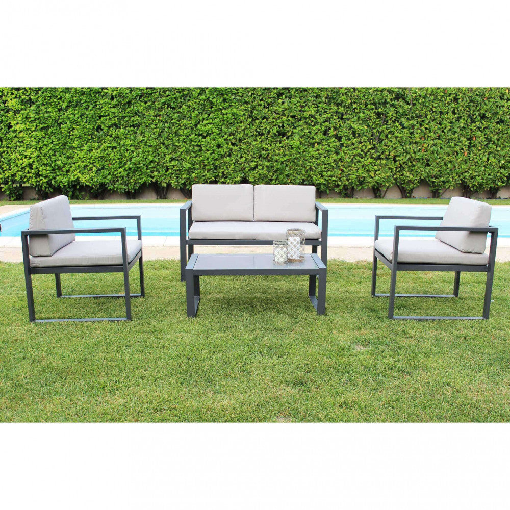 Set Salotto da Giardino Divano 2 Poltrone e Tavolino con Cuscini in Alluminio Antracite