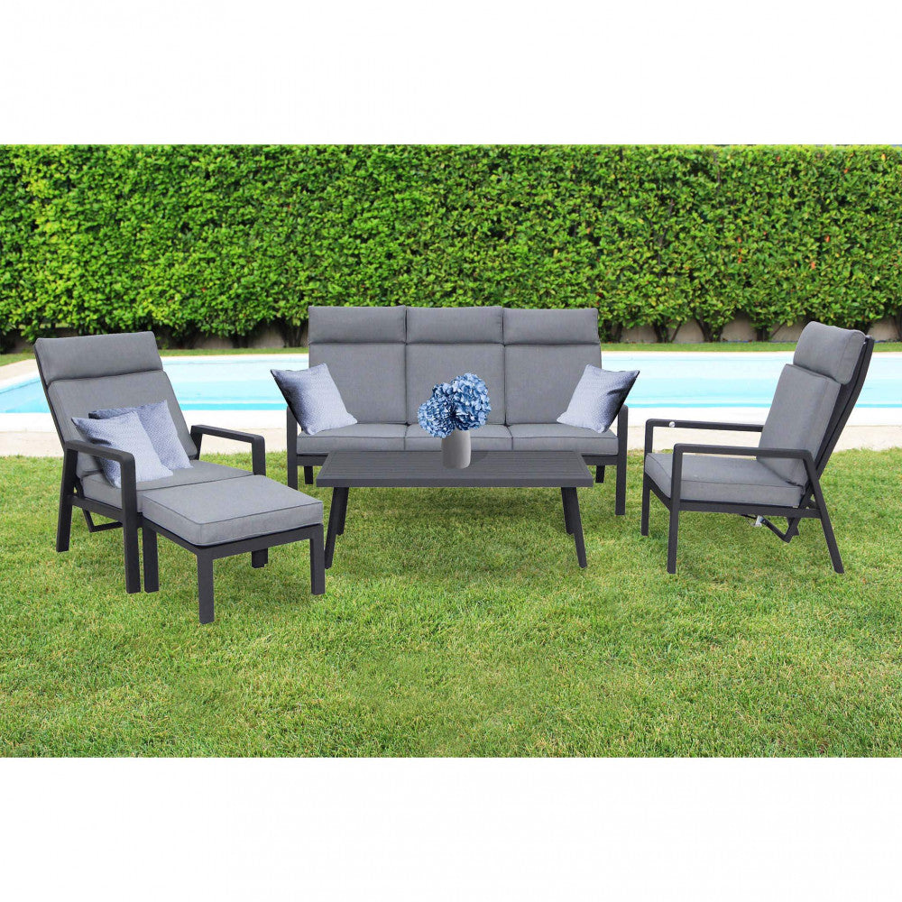 Set Salotto da Giardino Divano 2 Poltrone e Tavolino con Cuscini in Alluminio Antracite