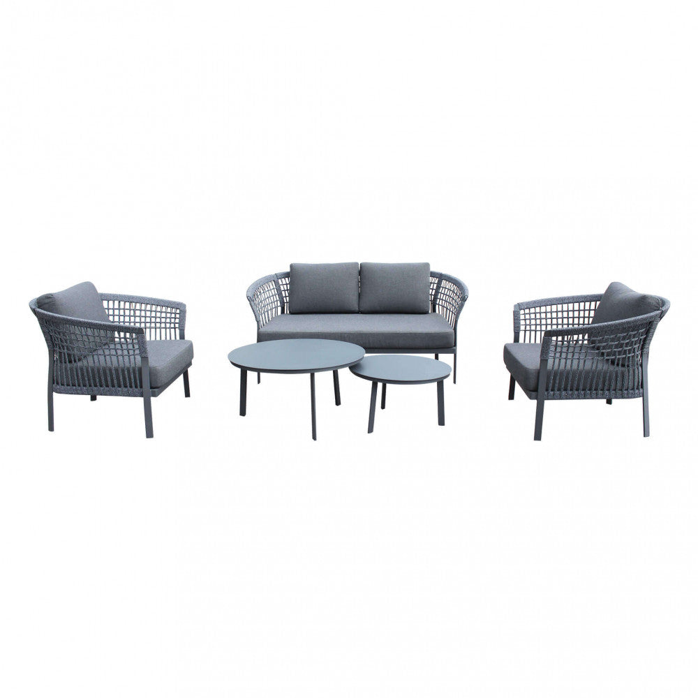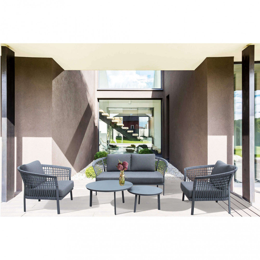 Set Salotto da Giardino Divano 2 Poltrone e Tavolino con Cuscini in Alluminio Antracite