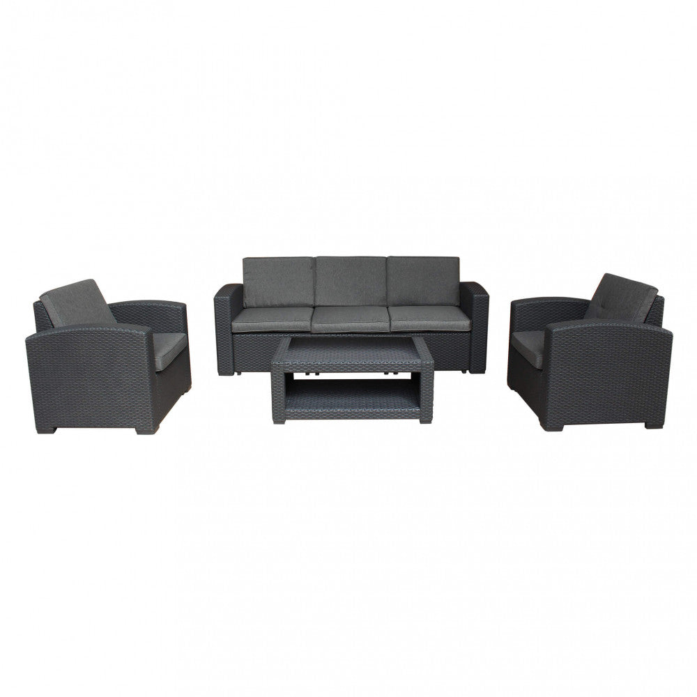 Set Salotto da Giardino Divano 2 Poltrone e Tavolino con Cuscini in Plastica Antracite
