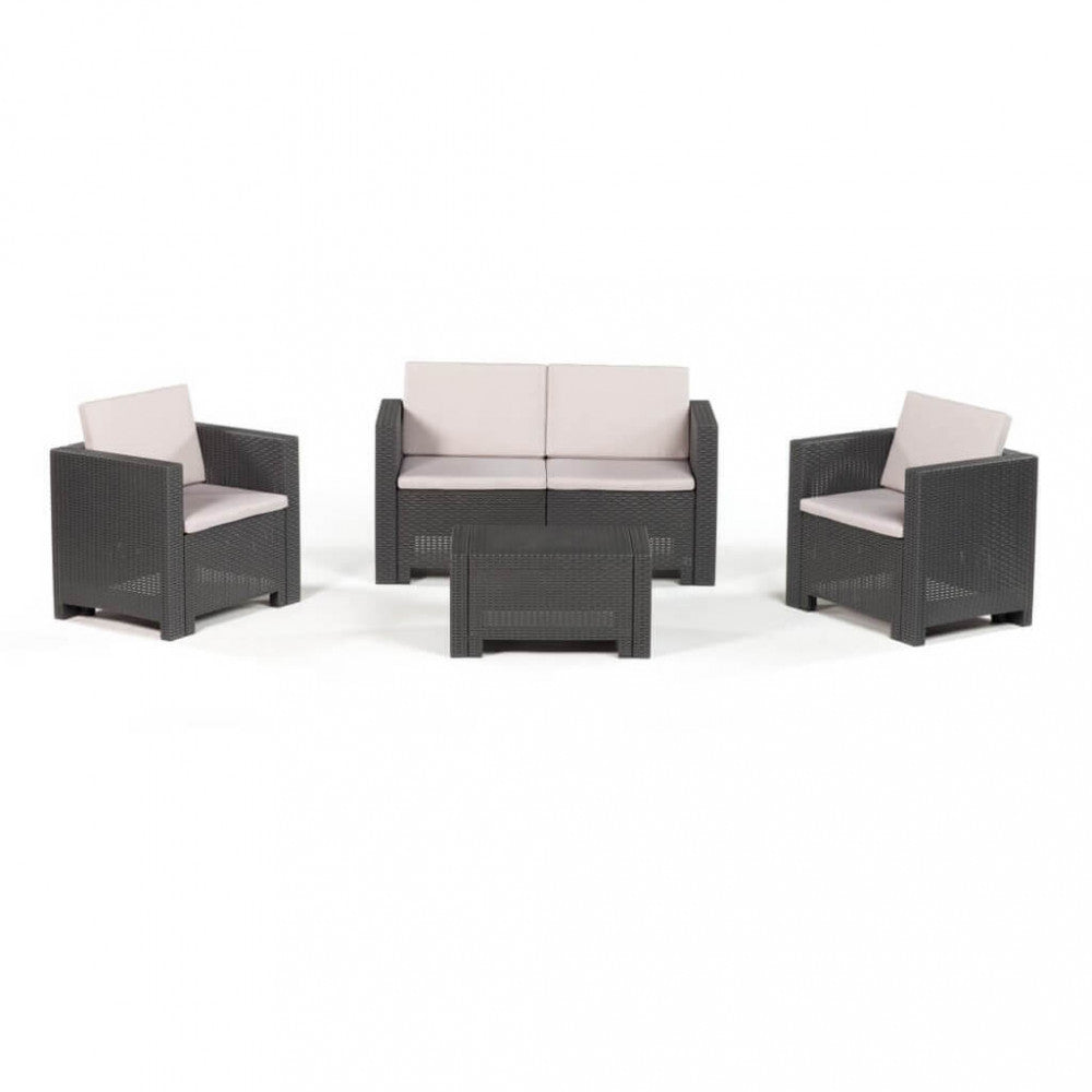 Set Salotto da Giardino Divano 2 Poltrone e Tavolino con Cuscini in Polipropilene Nero