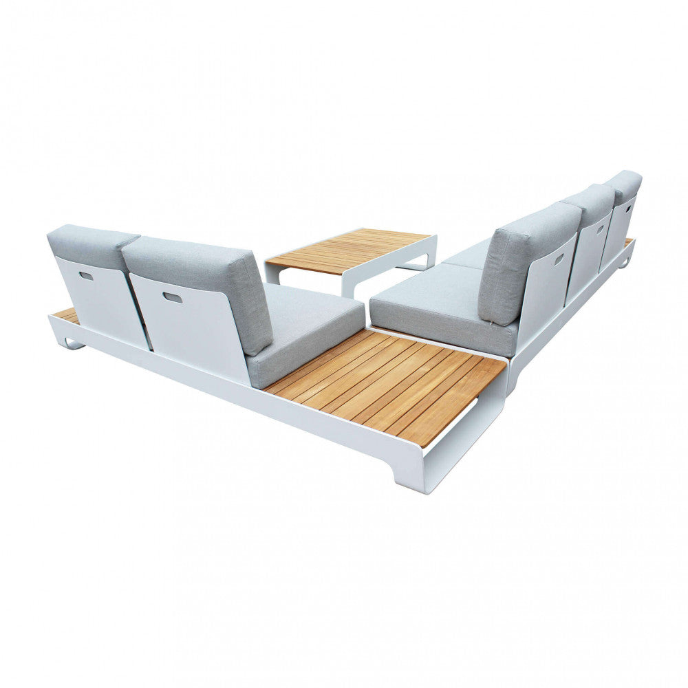Set Salotto da Giardino Divano 2 Poltrone e Tavolino con Cuscini in Teak Bianco