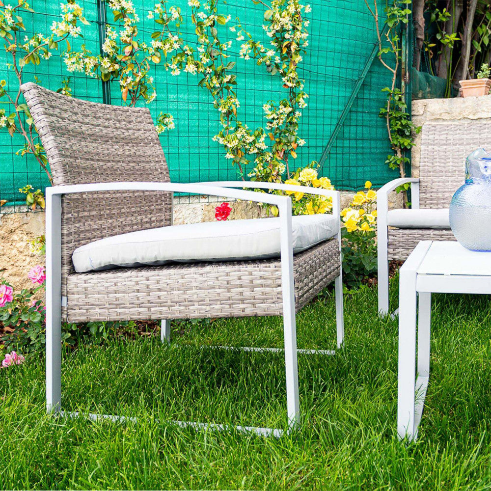 Set Salotto da Giardino Divano 2 Poltrone e Tavolino con Cuscini in Wicker Marrone