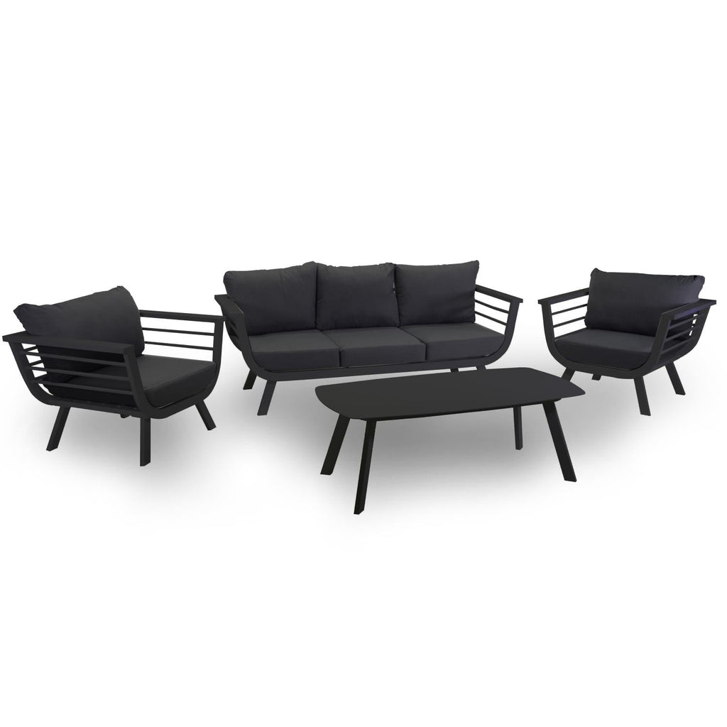 Set Salotto da Giardino Divano 2 Poltrone e Tavolino in Alluminio Riverside Antracite