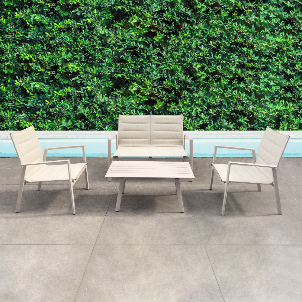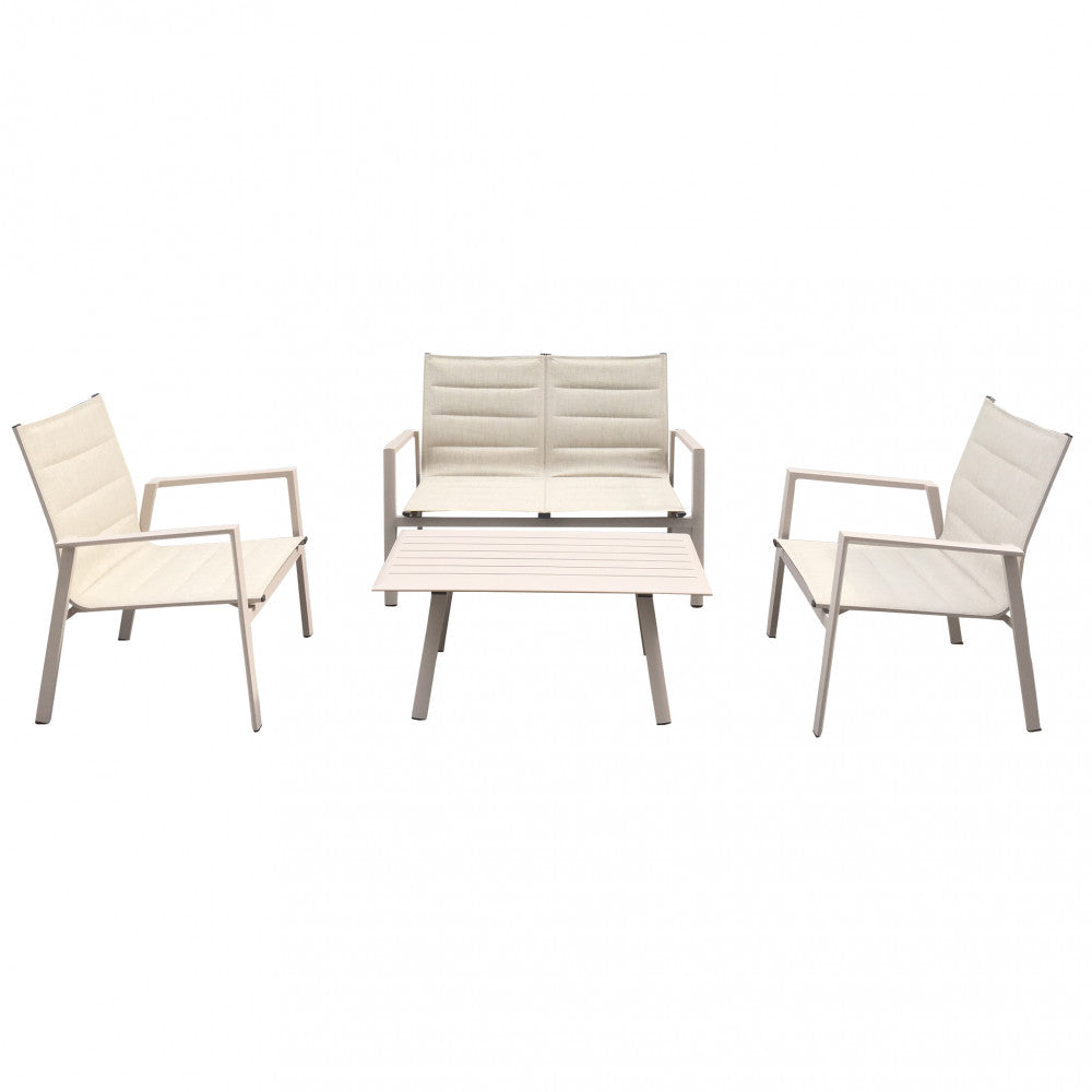 Set Salotto da Giardino Divano 2 Poltrone e Tavolino in Alluminio Tortora
