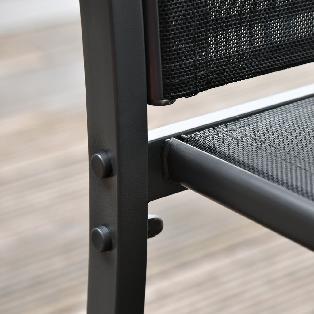 Ami fare colazione in giardino? Questo set con tavolino e sedie da giardino è perfetto per bere un caffè all'aperto. Include 4 pezzi: un tavolino, due sedie e una panca costruiti in metallo verniciato a polvere con finitura nera. Le sedute e gli schienali sono in textilene traspirante, il materiale perfetto per le calde giornate estive.