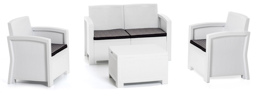 Set Salotto da Giardino Divano 2 Poltrone e Tavolino in Polipropilene Effetto Rattan New York Bianco