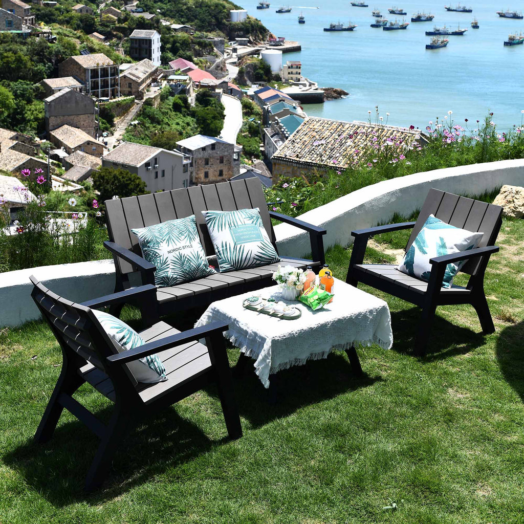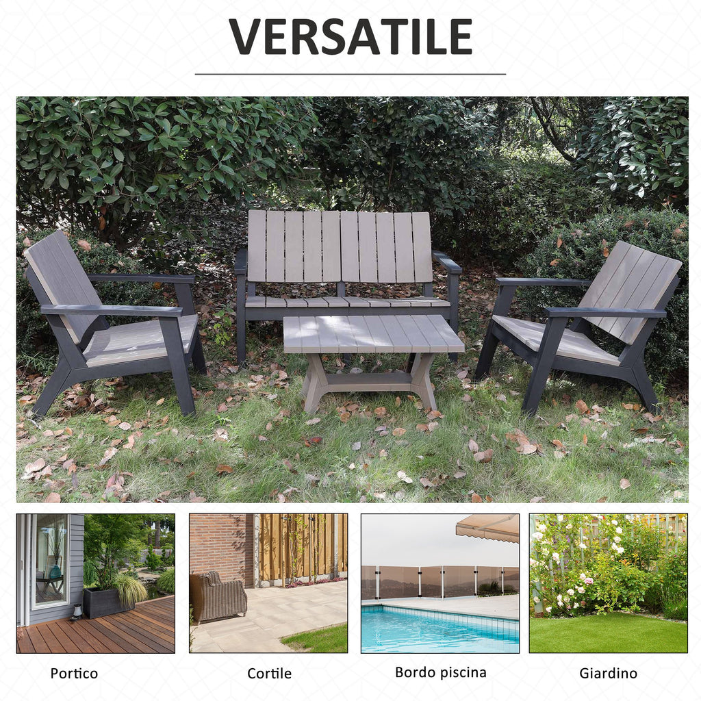 Set Salotto da Giardino Divano 2 Poltrone e Tavolino in Polipropilene Grigio