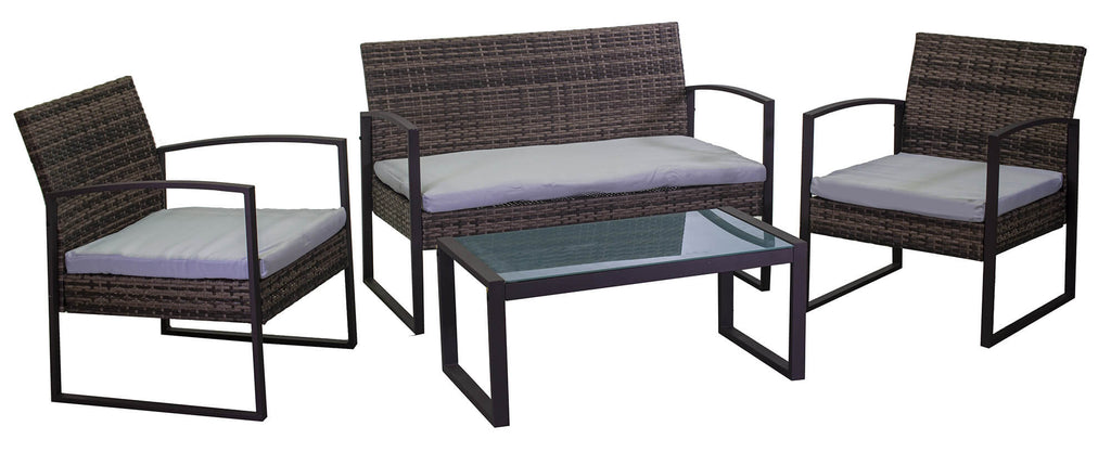 Set Salotto da Giardino Divano 2 Poltrone e Tavolino in Polyrattan Oregon Marrone