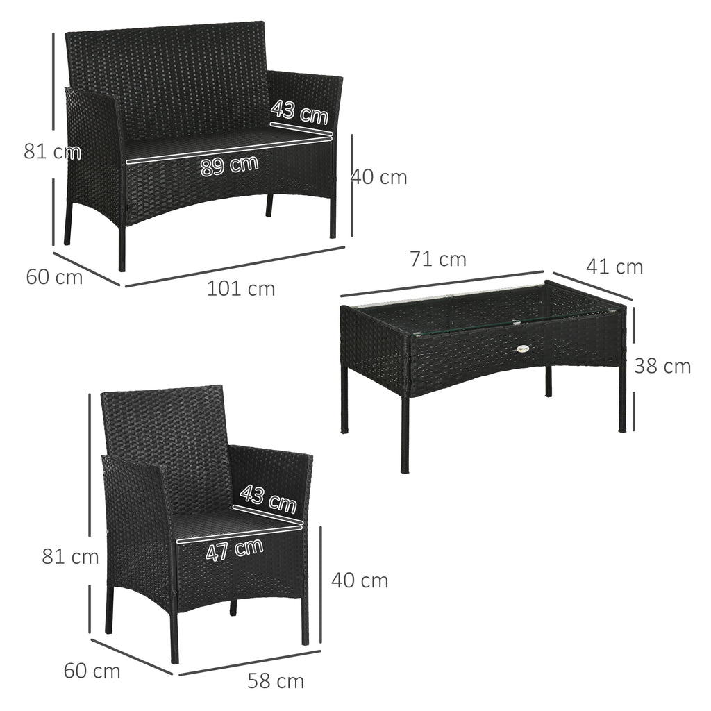 Set Salotto da Giardino Divano 2 Poltrone e Tavolino in Rattan PE Nero