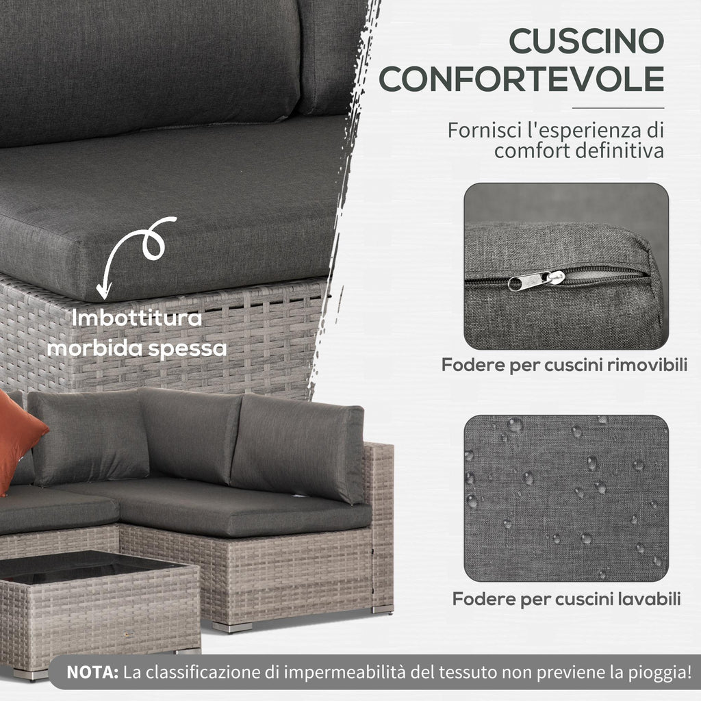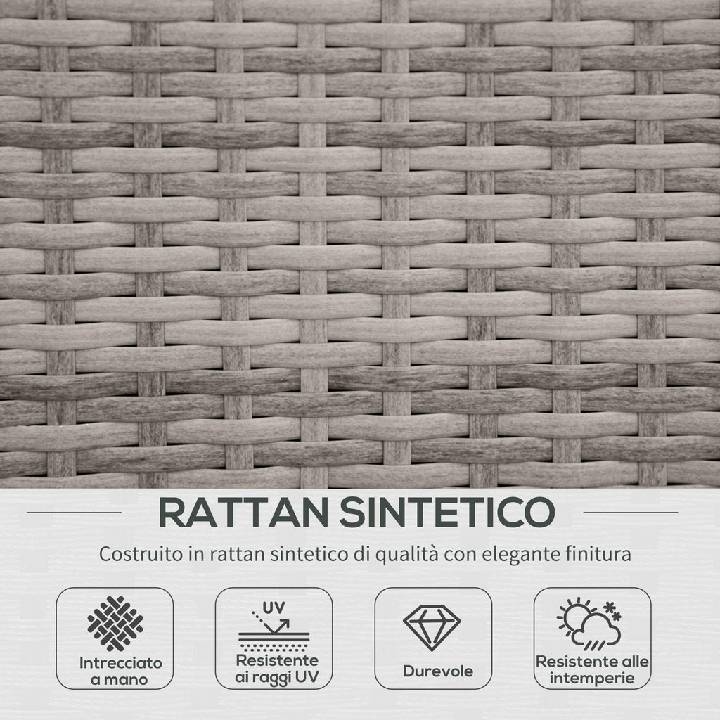Set Salotto da Giardino Divano 2 Poltrone e Tavolino in Rattan Polietilene Grigio