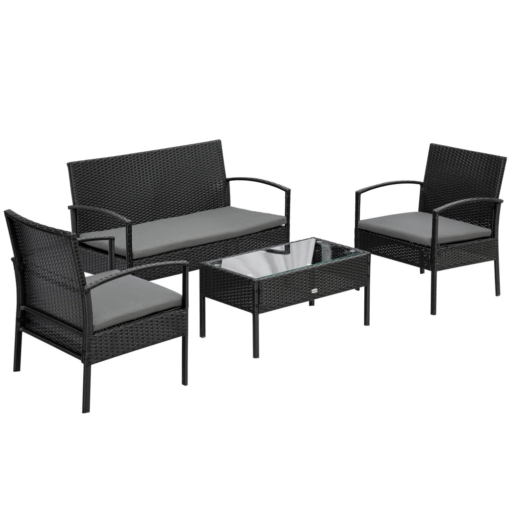 Set Salotto da Giardino Divano 2 Poltrone e Tavolino Nero con Cuscini Grigi