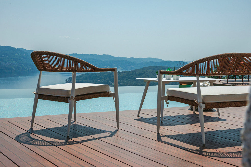 Il set Milano è composto da due poltrone, un divano e un tavolino, ideale per arredare con stile il tuo spazio esterno. Le dimensioni delle poltrone sono 67x76x70 cm, mentre per il divano sono 137x76x70 cm. Il tavolino, con piano a doghe di alluminio, misura 100x45x55 cm. La struttura in alluminio bianco B, il twist wicker Ø 5 mm paglia e i cuscini sfoderabili color ecru completano questo elegante set da giardino.