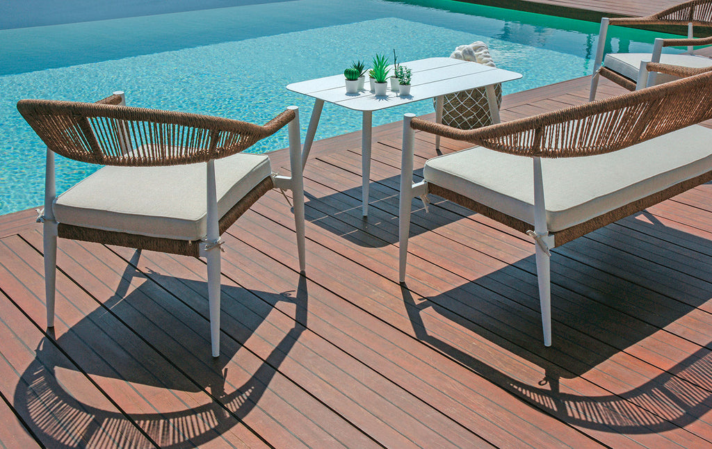 - Dimensioni Tavolino (LxAxP): 100x45x55 cm con Piano a Doghe di Alluminio