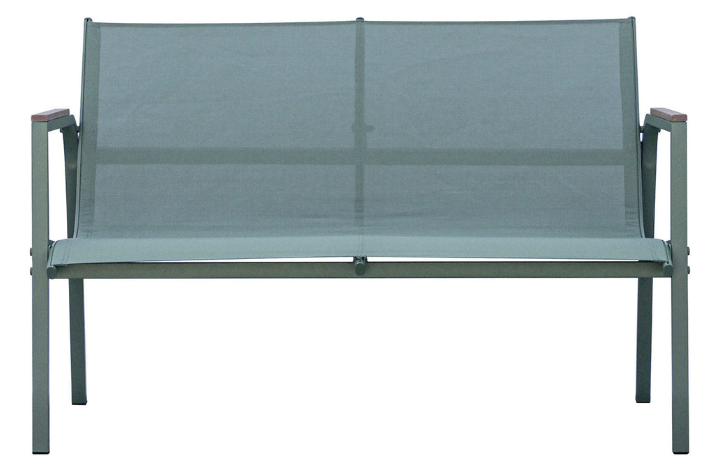 Set Salotto da Giardino Divano 2 Poltrone e Tavolino Tarquinia in Ferro e Textilene Verde
