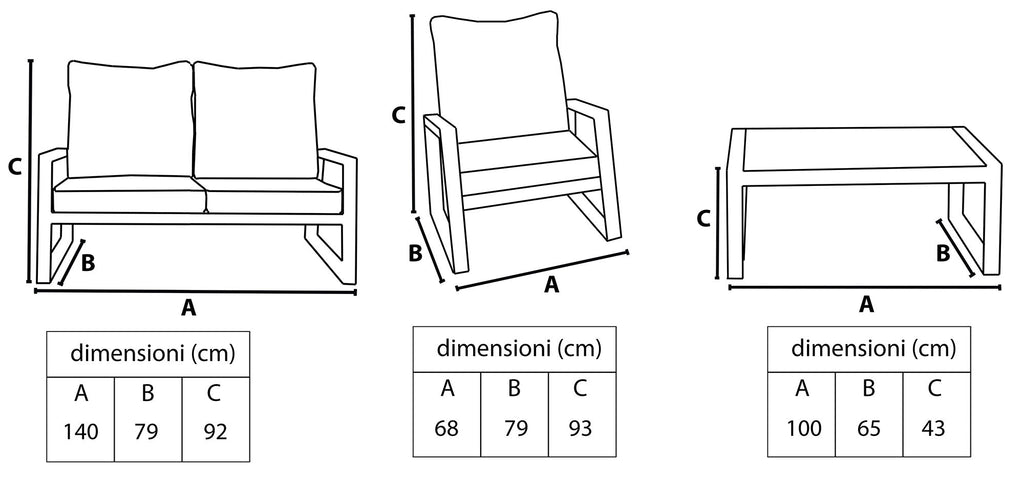 Set Salotto da Giardino Divano 2 Posti 2 Poltrone e Tavolino Mikonos