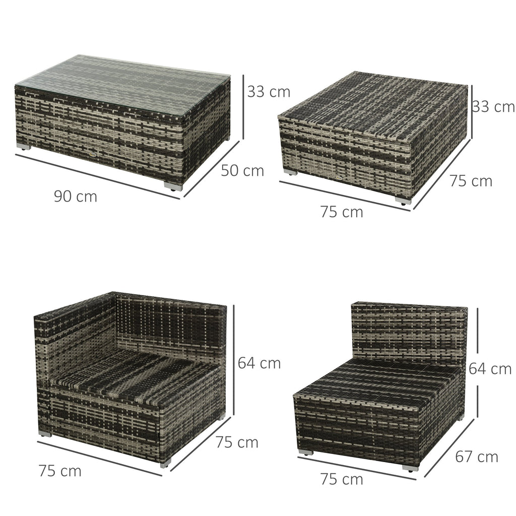 Set Salotto da Giardino Divano 3 Posti Pouf e Tavolino in Rattan Grigio