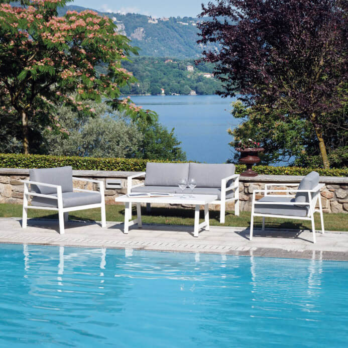 Set Salotto da Giardino in Alluminio Divano 2 Poltrone e Tavolino Vorghini Leida