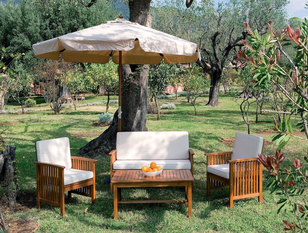 Set Salotto da Giardino in Legno Divano 2 Poltrone e Tavolino Bauer New Castle