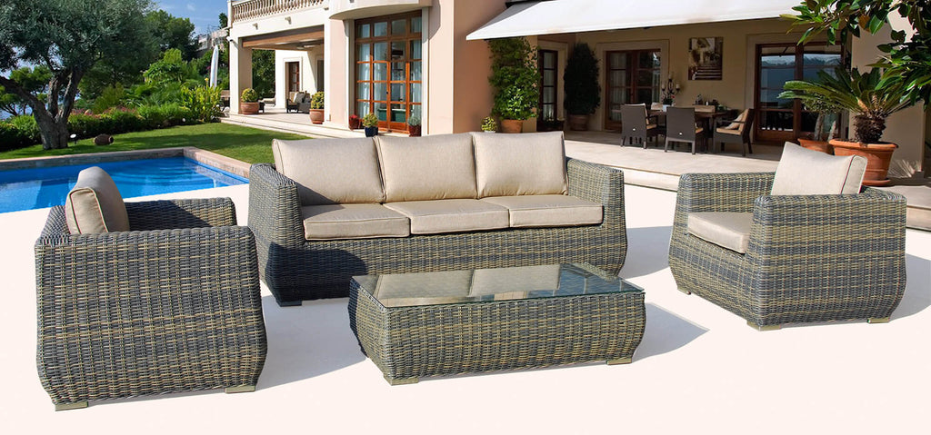 Set Salotto da Giardino in Polipropilene Divano 2 Poltrone e Tavolino Bauer Portofino
