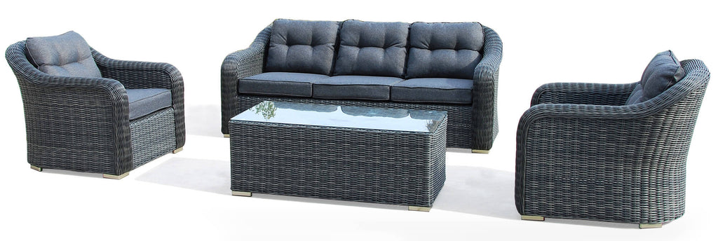 Set Salotto da Giardino in Polyrattan Divano 2 Poltrone e Tavolino Bauer Formentera Grigio