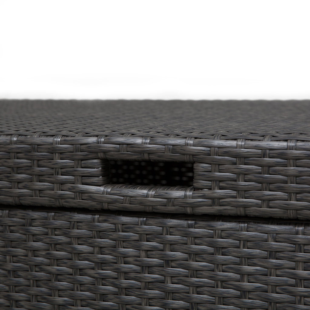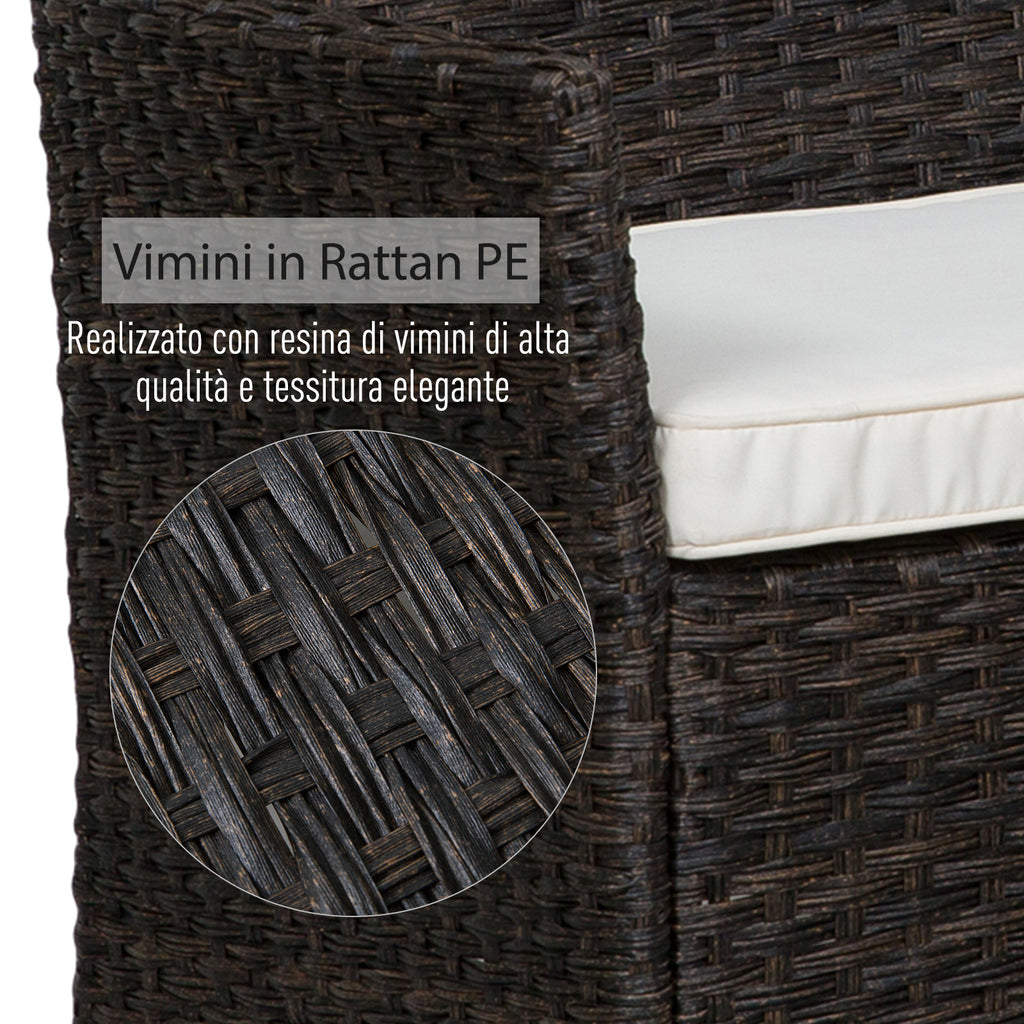 Set Salotto da Giardino in Rattan Divano 2 Poltrone e Tavolo Contenitore Nero e Bianco