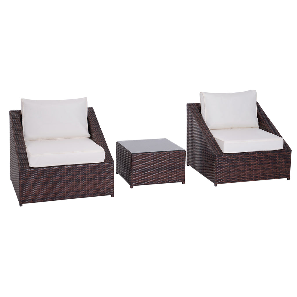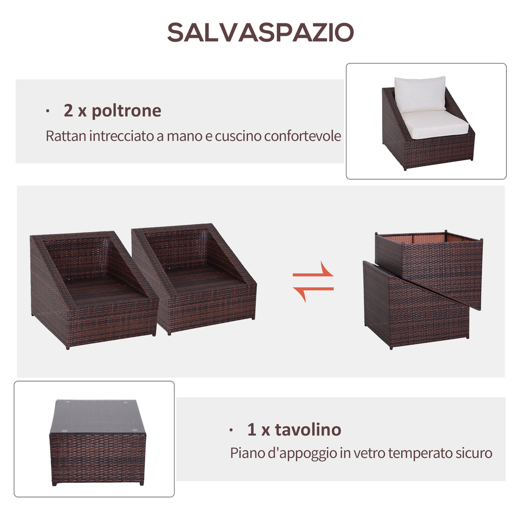 Set Salotto da Giardino in Rattan Sintetico 2 Poltrone e Tavolino Marrone