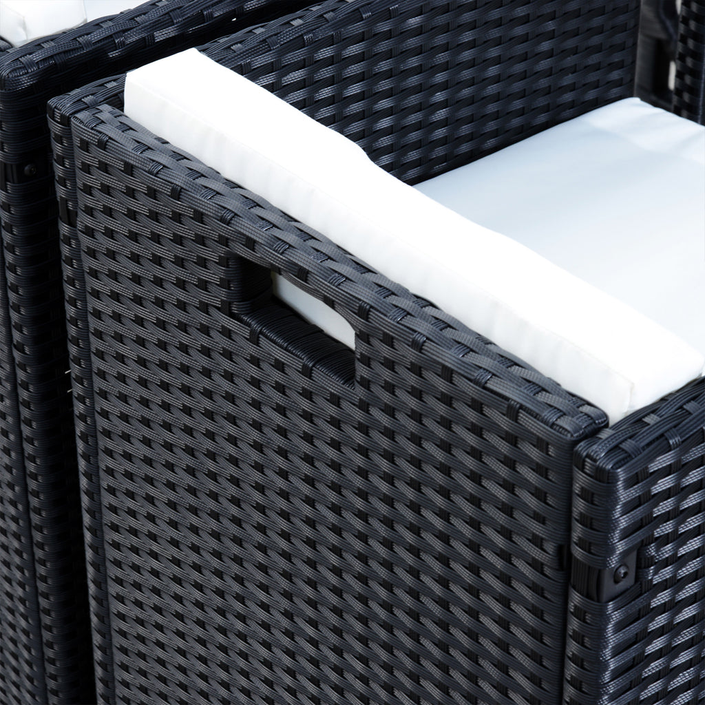 Set Salotto da Giardino in Rattan Sintetico 4 Poltrone e Tavolino Nero