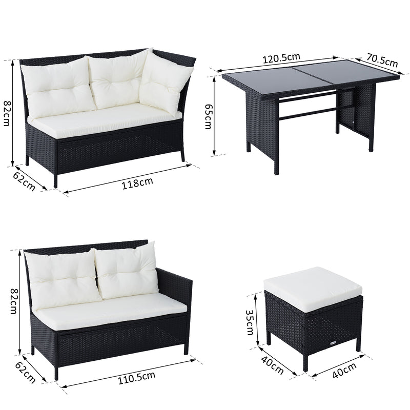Set Salotto da Giardino in Rattan Sintetico 6 pezzi DIvano con Cuscini e Tavolino Nero
