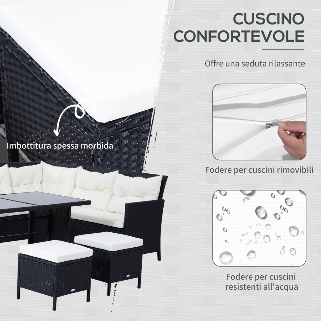 Set Salotto da Giardino in PE Rattan 6 pezzi DIvano con Cuscini e Tavolino Nero