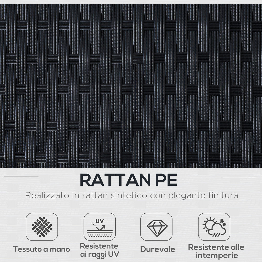 Set Salotto da Giardino in PE Rattan Divano e Poggiapiedi con Cuscini Nero