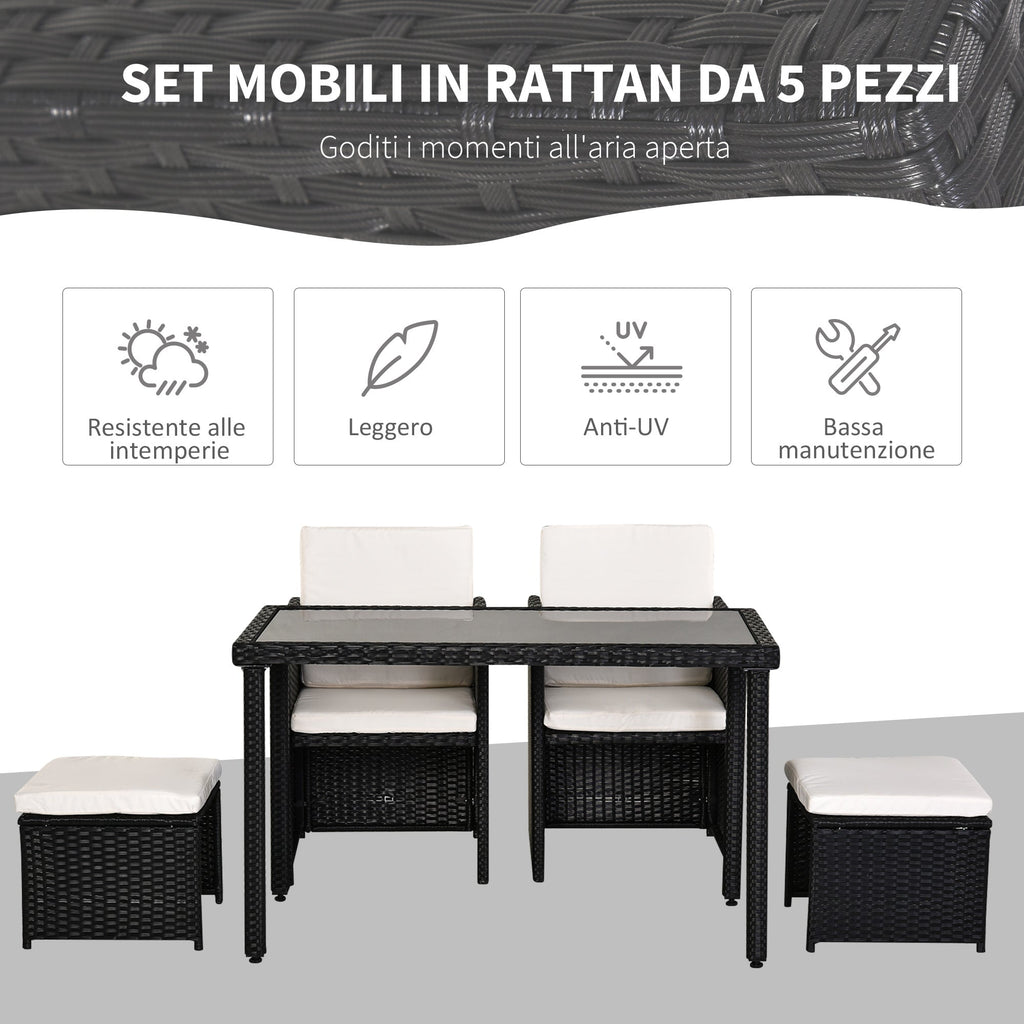 Set Salotto da Giardino in Rattan Sintetico Tavolo 2 Poltrone 2 Poff Nero