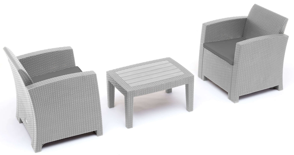 Set Salotto da Giardino in Resina 2 Poltrone e Tavolino Taddei Iseo Grigio Chiaro