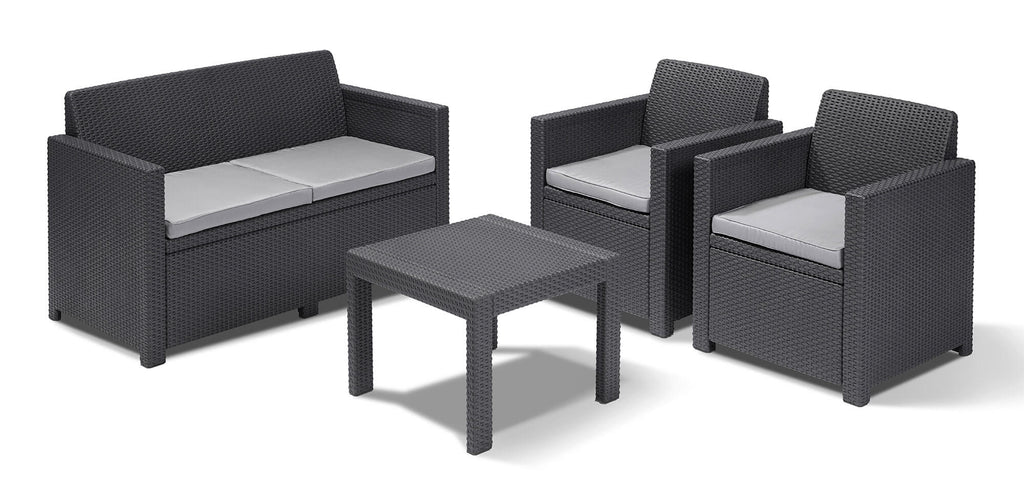 Set Salotto da Giardino in Resina Divano 2 Poltrone e Tavolino Bauer Alabama Graphite