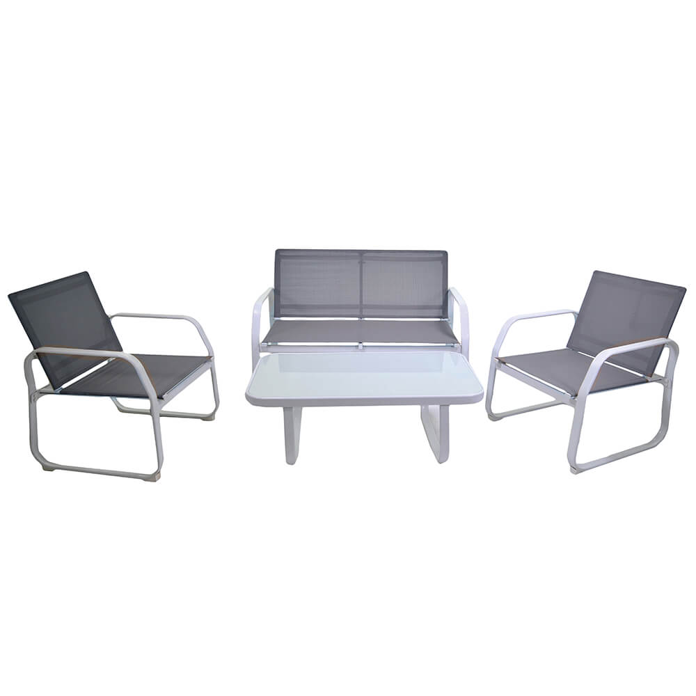 Set Salotto Da Giardino Tavolino Divano 2 Sedie in Metallo e Textilene ø66xH71cm Anita Grigio