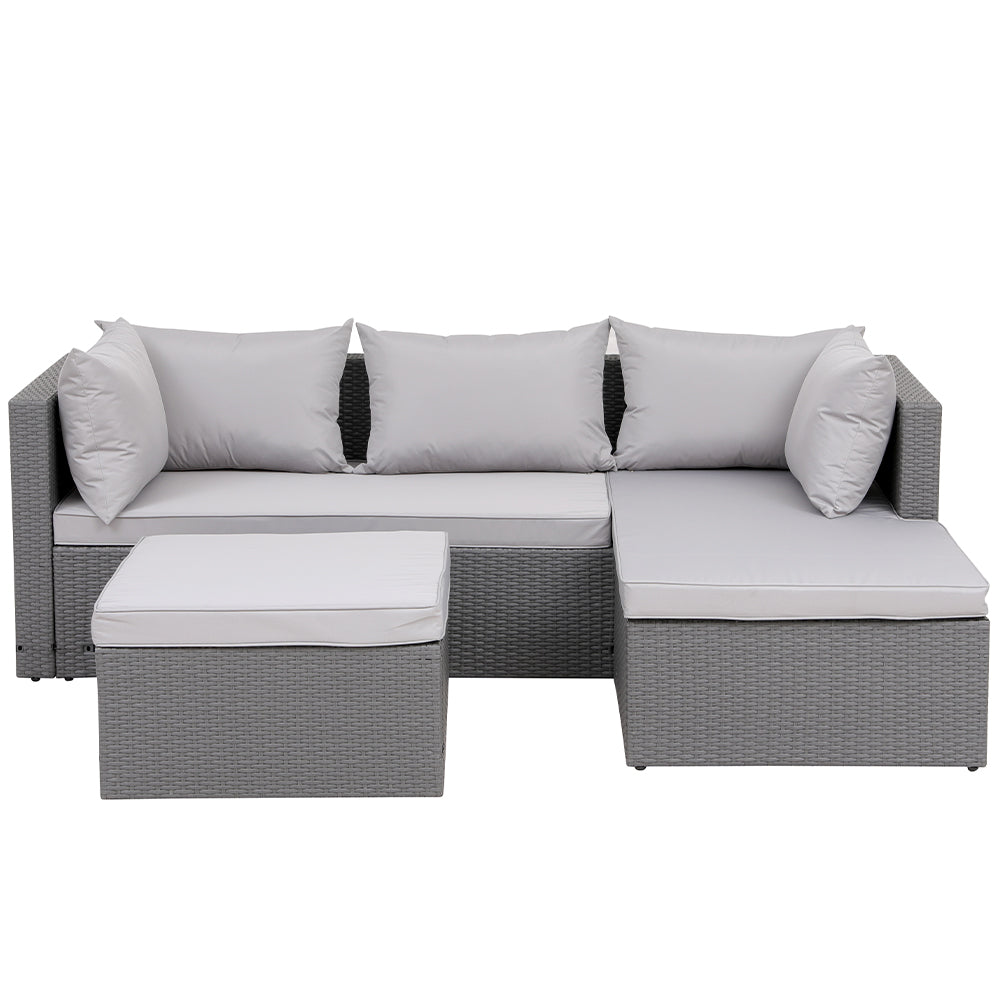 Set Salotto Divano da Giardino con Pouf Contenitore in Polyrattan Grigio Chiaro